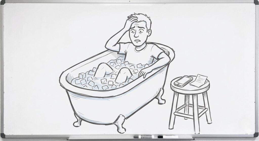 目覚めたとき、デーブはホテルの風呂の中で『氷水』に浸かっていました。