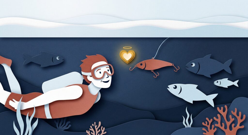 「どうやって買わせようか」と売り手側(漁師)の視点で考えているうちは、商品は売れません。 人間とAIの力を合わせてお客さん(魚)の気持ちになり、どんな言葉(エサ)なら口を使いたくなるのかを徹底的にリサーチして理解すること。