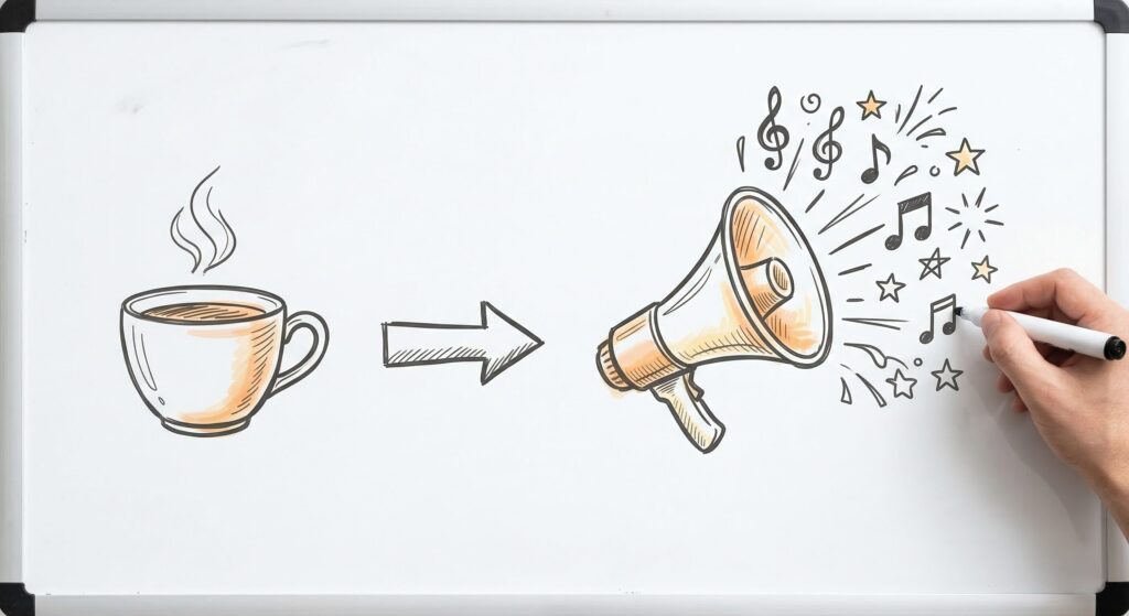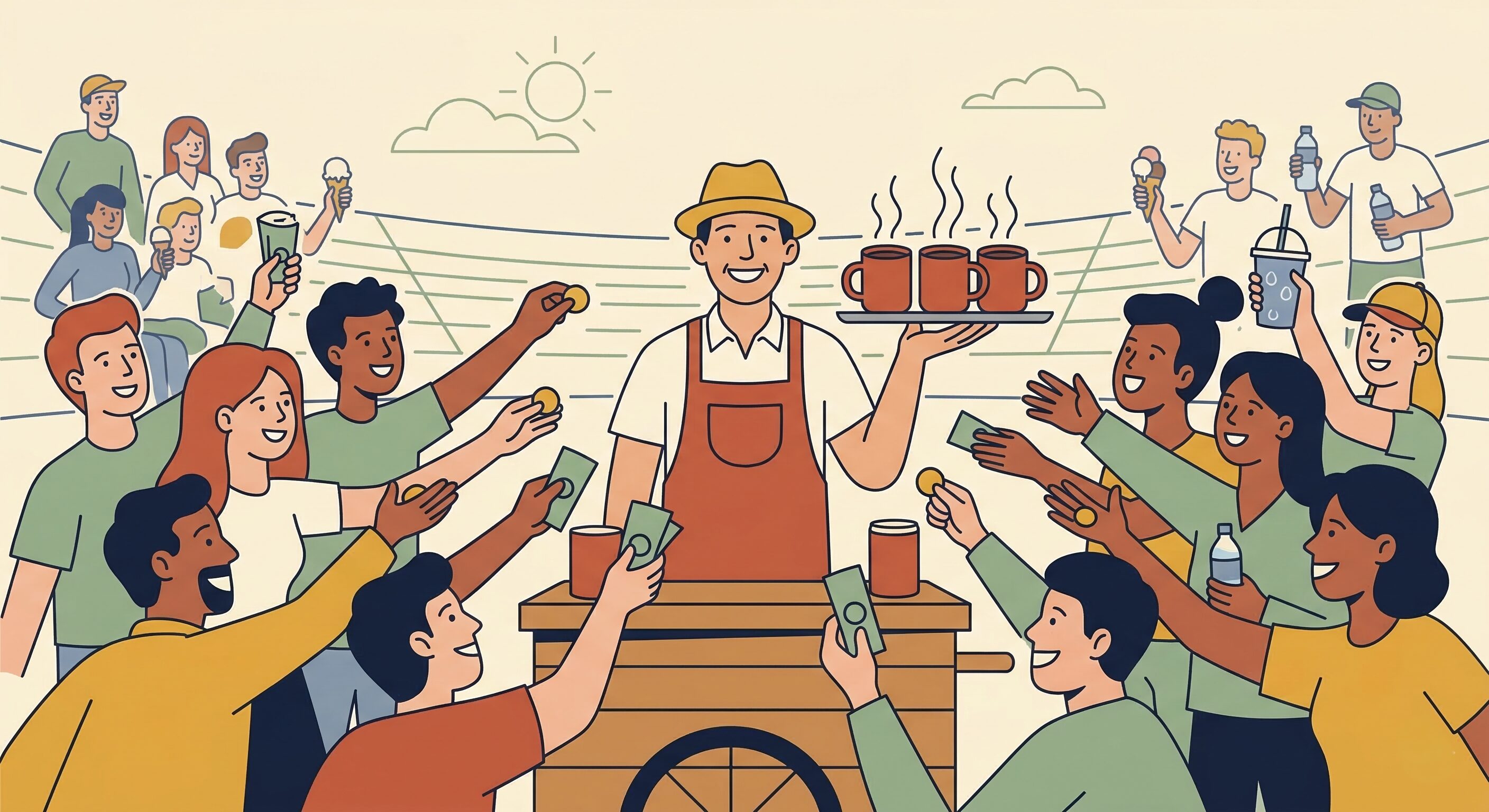 この時、お客さんは「喉が渇いたから」「コーヒーが飲みたかったから」お金を払ったのでしょうか?違いますよね。 彼らがお金を払ったのは、「点が入った喜び」と「一緒に応援したお兄ちゃんへのご祝儀(エンタメ体験)」に対してです。コーヒーは、ただの「体験への参加チケット(オマケ)」にすぎなかったのです。